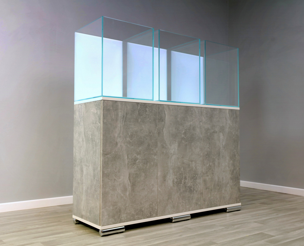 3 cube aquariums with a cabinet in a stylish, modern color